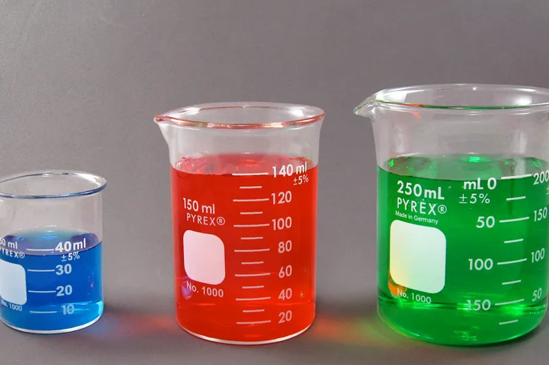 La mayoría de los nuevos artículos de vidrio presentan una reacción levemente alcalina. Para realizar pruebas químicas de precisión, el nuevo material de vidrio debe remojarse en agua ácida por varias horas (una solución de ácido clorhídrico o ácido nítrico al 1%) antes del lavado.